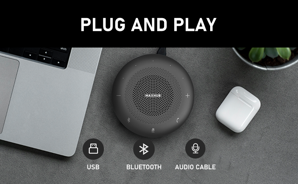 Designed for convenience, the MAXHUB BM11 offers multiple connectivity options, including USB, Bluetooth, and AUX, making it easy to connect to a variety of devices. The intuitive controls and indicator lights provide a user-friendly interface, allowing you to manage calls, adjust volume, and mute the microphone effortlessly.